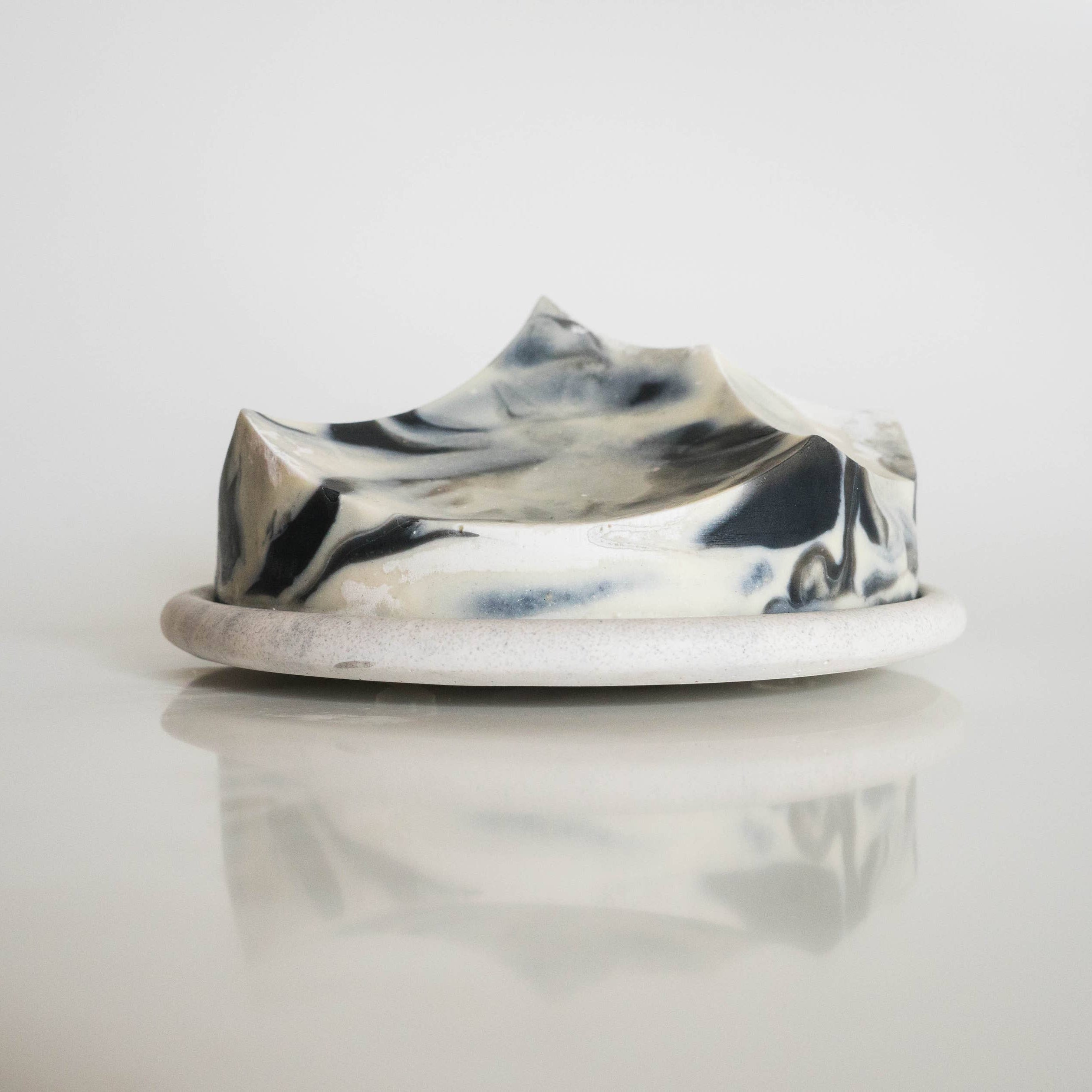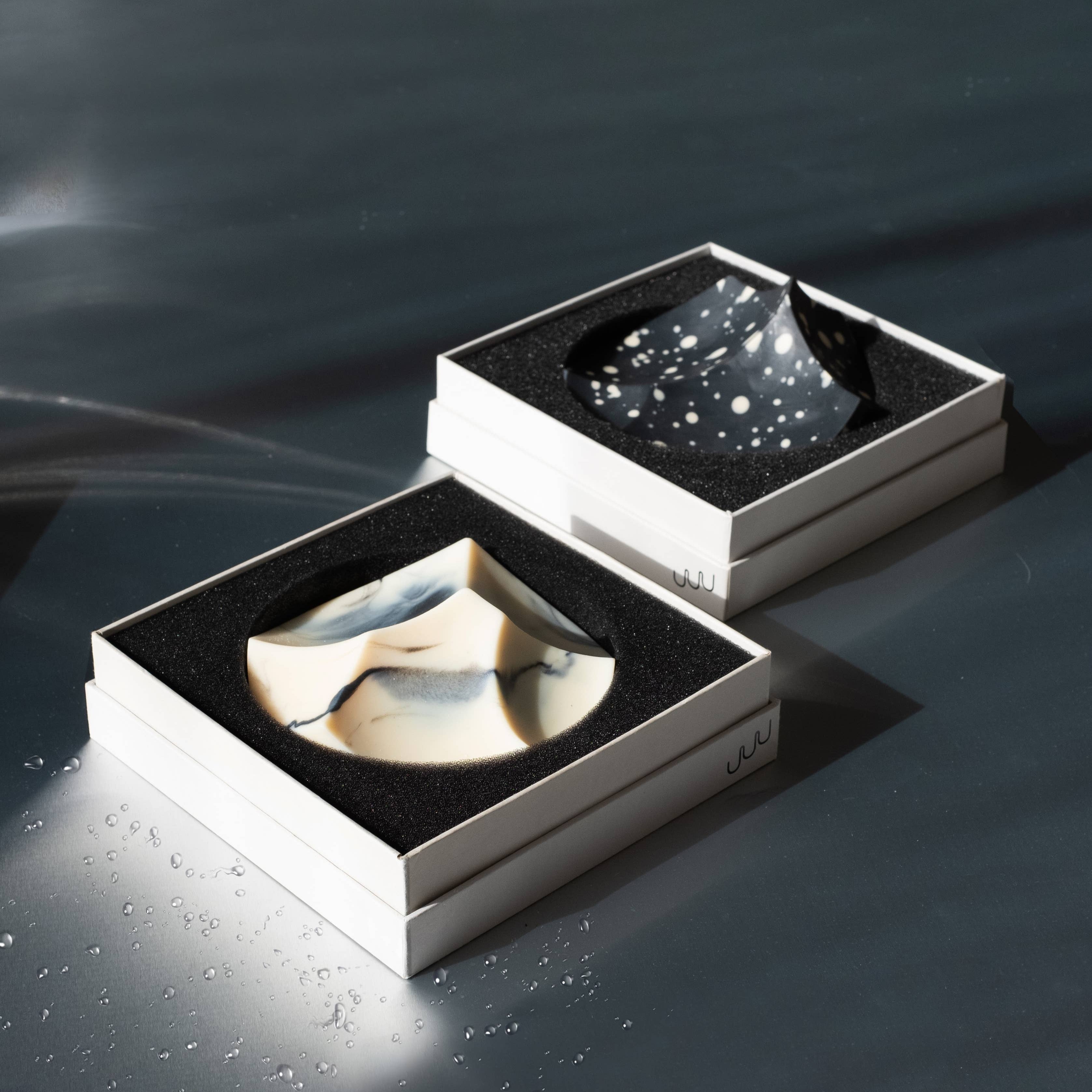 To use: Brush wet hands or cloth over the soap's surfaces to create lather, release the aromatic essential oils, and reveal the changing slopes.